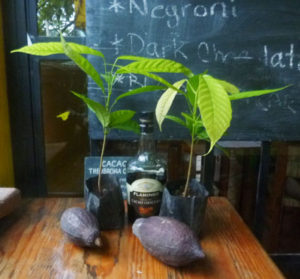 A tropical tree whose seeds are the source of commercial chocolate. Some of the plants that we sell (the larger ones) were seedlings produced from a plant we gave a friend to grow after we had brought it to Mexico about 15 years ago. The smaller plants are from specimens grown at the Vallarta Botanical Gardens.